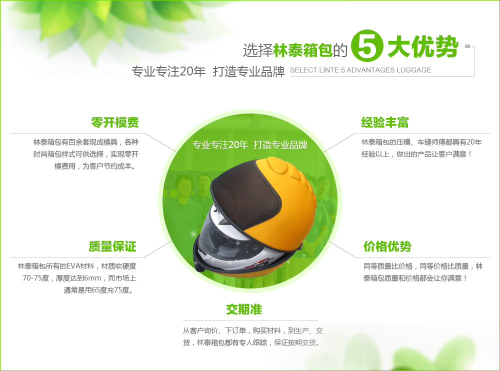 林泰發(fā)展的核心與愿景是不斷為我們的職員工提供一個(gè)溫馨的工作環(huán)境、為我們的客戶(hù)提供一個(gè)成本效 益好、增值空間大的箱包解決方案、及不斷為客戶(hù)創(chuàng)造價(jià)值是我們一直以來(lái)的追求。